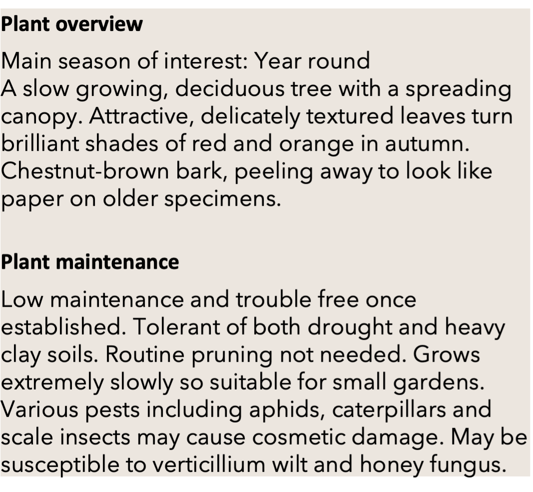 Image credit: Gmihail, CC BY-SA 3.0, https://commons.wikimedia.org/wiki/File:Acer_griseum_Kew.jpg